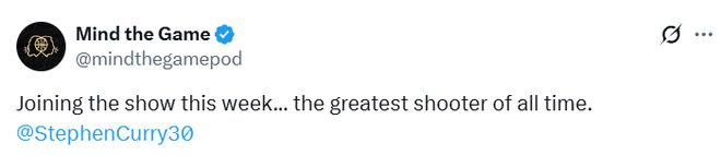北京時間11月4日,詹姆斯轉發播客重磅節目預告,他和納什聯合主持的播客節目《Mind the Game》的下一位嘉賓是勇士球星斯蒂芬-庫里。播客賬號寫道:“本周做客本節目的嘉賓,是史上最偉大的射手斯蒂芬-庫里。”