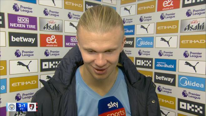 在英超第10輪上演梅開(kāi)二度幫助曼城主場(chǎng)3-1擊敗伯恩茅斯之后,哈蘭德接受了來(lái)自天空體育的采訪。